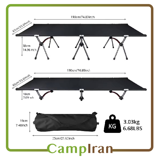 یکی از مهمترین مزایای تخت خواب کمپینگ، ساختار تاشو و جمعوجور آن است. این تخت بهراحتی باز و بسته میشود و پس از جمع شدن فضای کمی اشغال میکند. شما میتوانید تخت را بهسادگی در صندوق عقب خودرو، انبار یا کنار سایر تجهیزات کمپینگ قرار دهید. طراحی تاشو باعث میشود حمل و نقل تخت در سفرهای کوتاه یا طولانی بدون دردسر انجام شود.