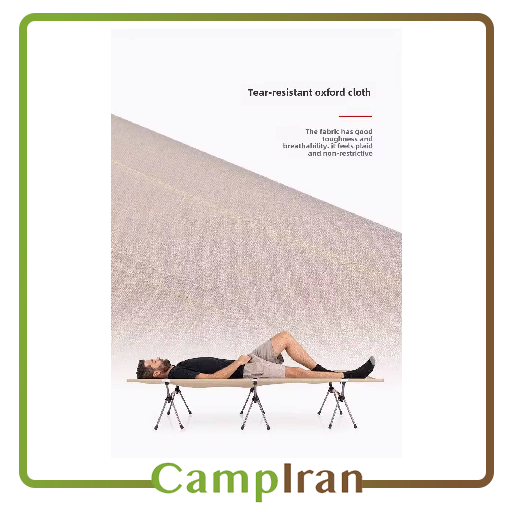 سطح خواب تخت کمپینگ معمولاً از پارچه مقاوم، بادوام و تنفسپذیر ساخته شده است. این پارچه در برابر کشش، سایش و رطوبت مقاومت خوبی دارد و در عین حال اجازه گردش هوا را میدهد. گردش مناسب هوا باعث کاهش تعریق و ایجاد حس خنکی و راحتی در زمان خواب میشود. این ویژگی برای استفاده در فصلهای گرم سال یا کمپینگهای چندروزه بسیار مهم است.