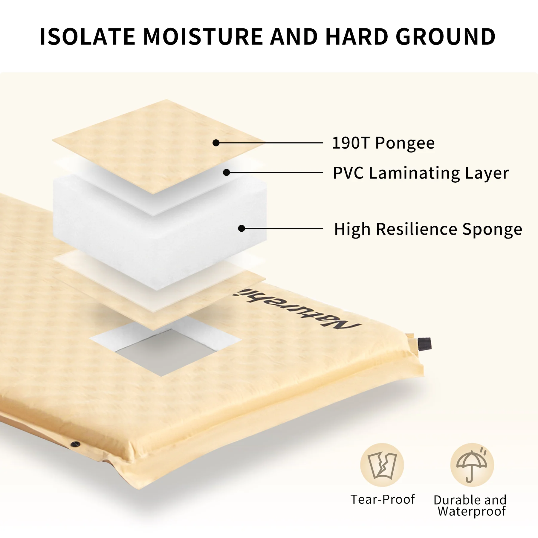 تشک Naturehike D01 خودباد شونده با بالش داخلی، ضخامت ۳–۶ cm، ابعاد ۱۹۲×۶۵ cm، وزن حدود ۱.۸۵ kg، کاربردی، انعطاف‌پذیر و راحت برای کمپینگ، با قابلیت اتصال به تشک‌های مشابه.