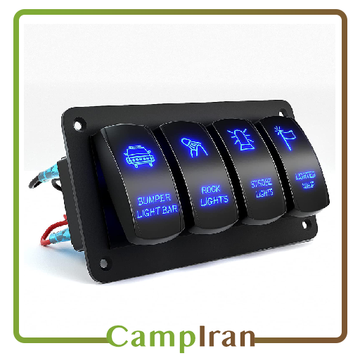 کنترل همزمان چهار دستگاه: کلید آفرودی چهارپل امکان کنترل چهار تجهیزات مختلف خودرو مانند چراغها، کمپرسور، سیستم صوتی و سایر دستگاههای جانبی را به طور همزمان فراهم میکند. این قابلیت به شما اجازه میدهد بدون پیچیدگی و با یک نگاه، تجهیزات خودرو را مدیریت کنید.