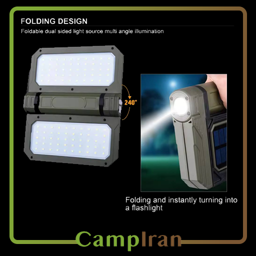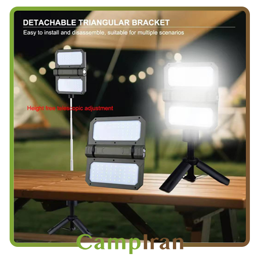 مقاومت در برابر شرایط محیطی: بسیاری از چراغهای کمپ با پنل خورشیدی، طراحی شدهاند تا در برابر شرایط مختلف آب و هوایی مقاوم باشند.
